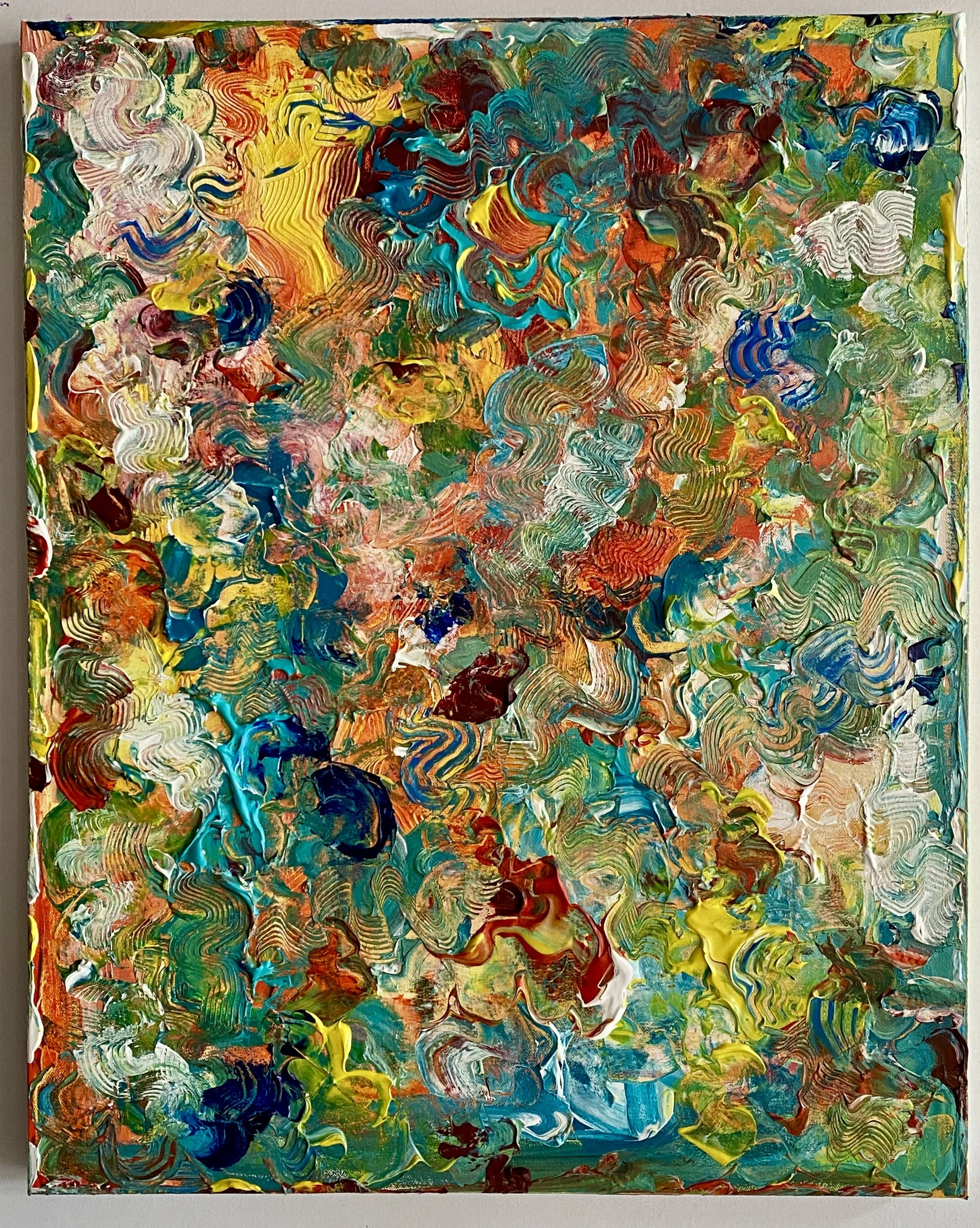 This abstract piece represents the colourful multifaceted approach neurodiverse individuals play in our world. As someone who lives with neurodiversity, my proposition for this piece is to truly embrace the use of colour to represent the diversity of the mind and the synapses of electricity that run through us as humans daily. My art, often spontaneous, is a way to reveal the inner workings of abstract-thinking humans' minds, highlighting the role that unique neuropathways play in shaping our perceptions and experiences.